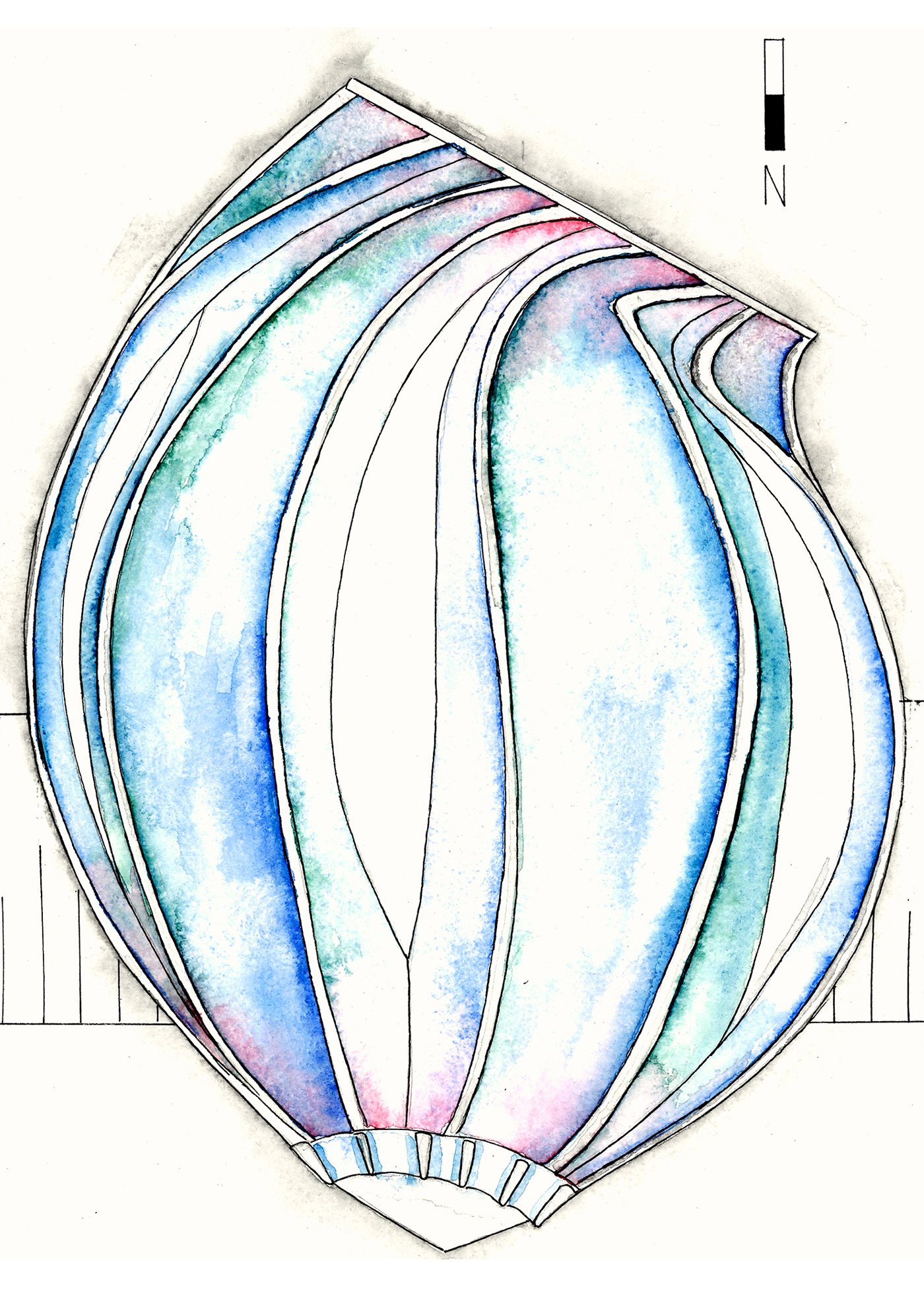 Das Projekt Harpahaus wurde im Rahmen des Moduls Entwerfen II entwickelt. Es handelt sich um ein Ferienhaus, das am Rande der Stadt stehen soll und gewisse Isolation bieten kann. Die Grundidee dabei war, mit der plastischen Grundform des Hauses die Verbindung zur Natur zu schaffen. Die Harpa Muschel mit ihrer einzigartigen Rippenstruktur wurde letztendlich als Vorbild genommen. Die Gebäudetragkostruktion besteht aus Stahlträgern in extra angefertigter Form, zwischen denen eine transluzente Folie gespannt ist. Der Entwurf dieses Ferienhauses ist reine Vision und Versuch die organischen Strukturen in Architektur reinzubringen. Die Arbeit wurde von 2 Personen ausgeführt. Alle Zeichnungen wurden vom Hand angefertigt.