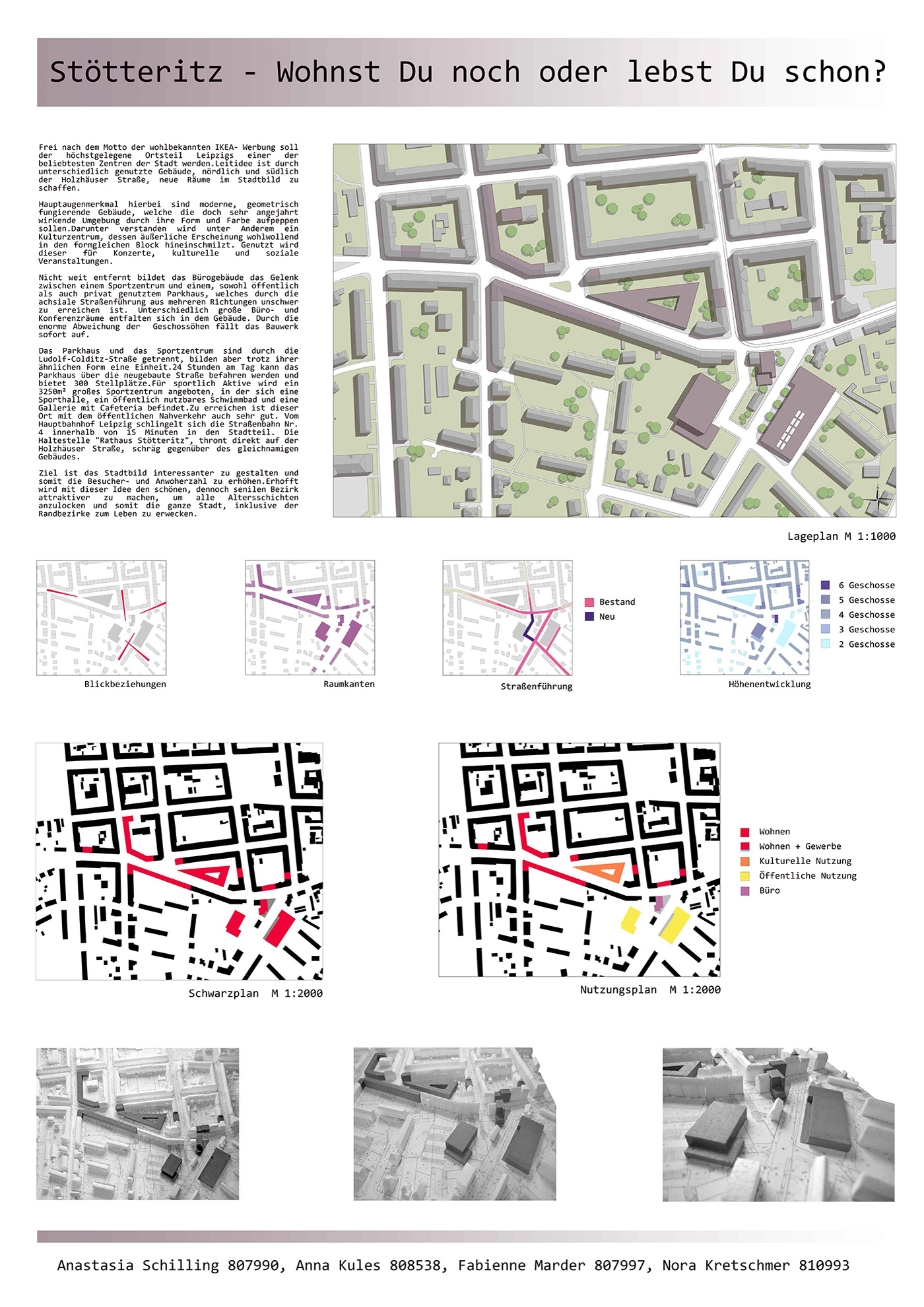Frei nach dem Motto der wohlbekannten IKEA-Werbung soll der höchstgelegene Ortsteil Leipzigs einer der beliebtesten Zentren der Stadt werden. Leitidee dieser Arbeit ist durch unterschiedlich genutzte Gebäude, nördlich und südlich der Holzhäuser Straße, neue Räume im Stadtbild zu schaffen.